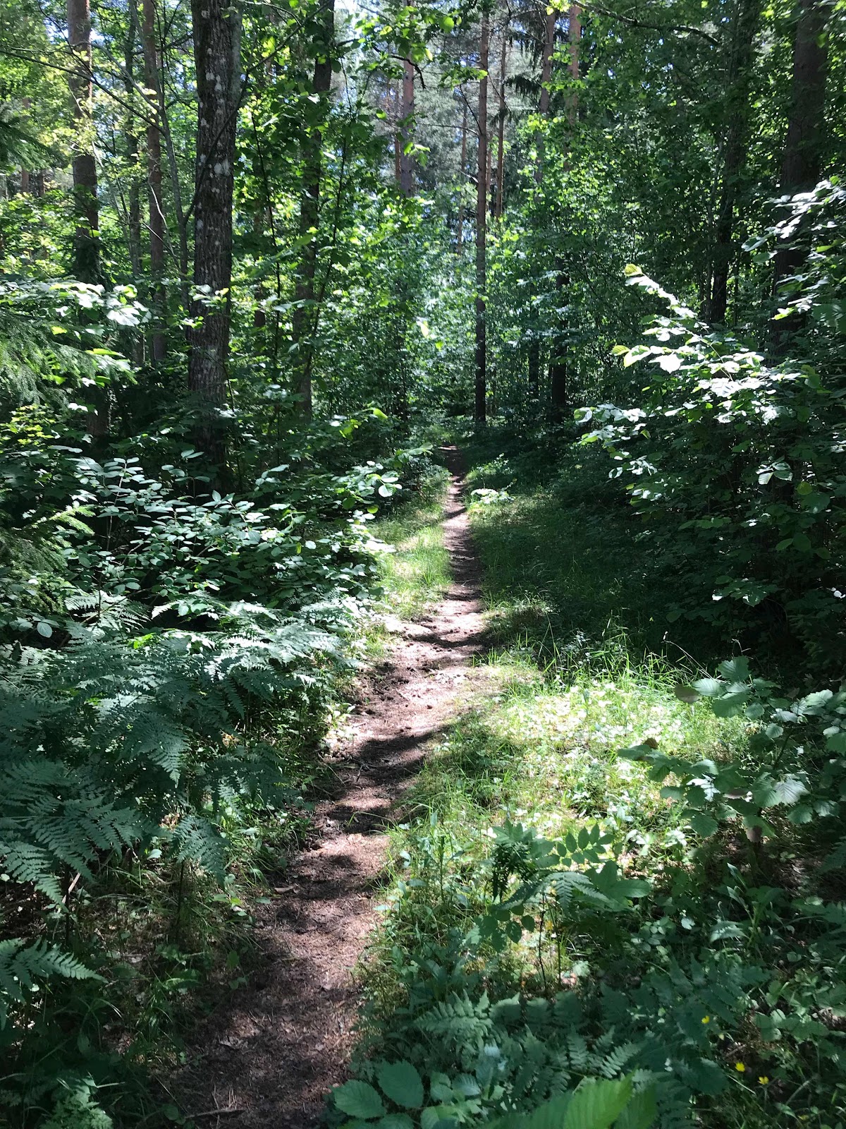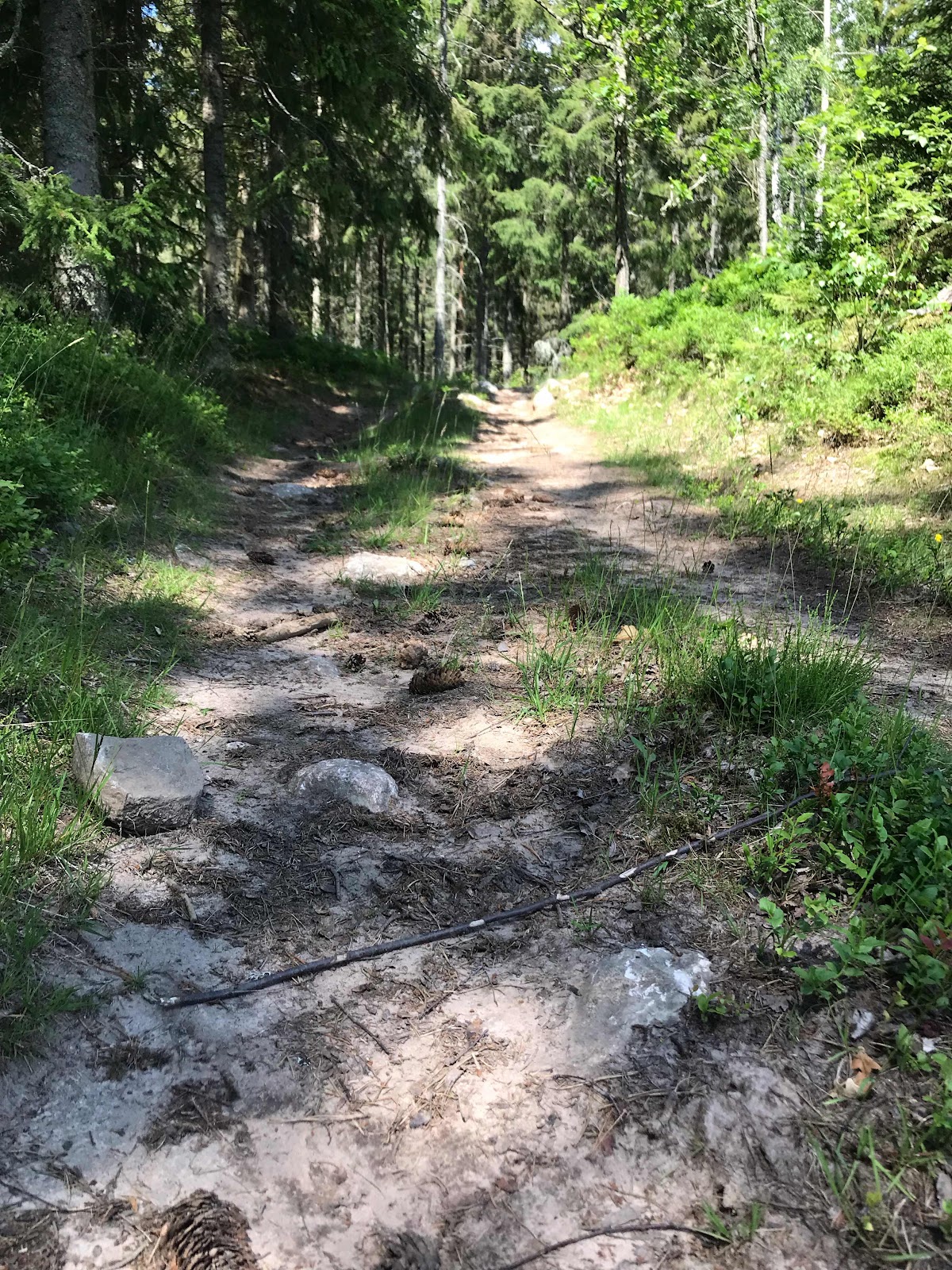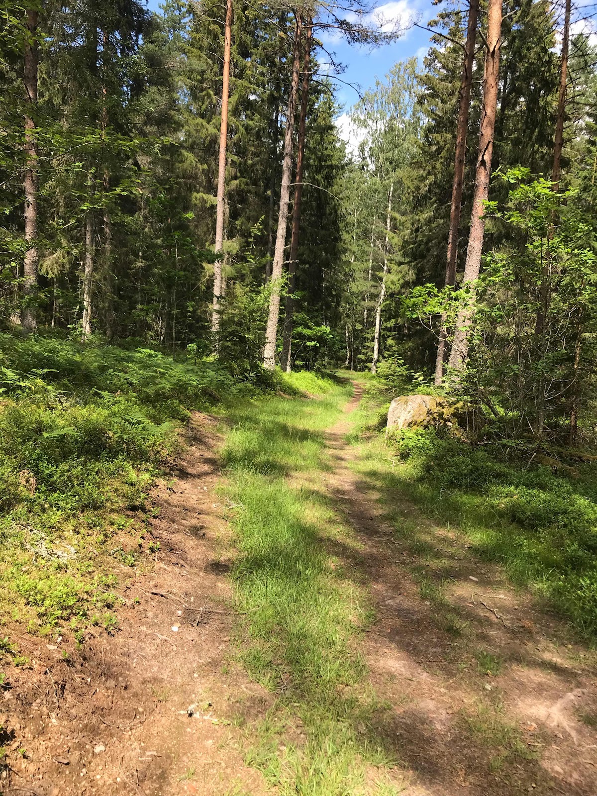 Trång stig går sedan över i grusväg, härligt, fast på olika sätt.